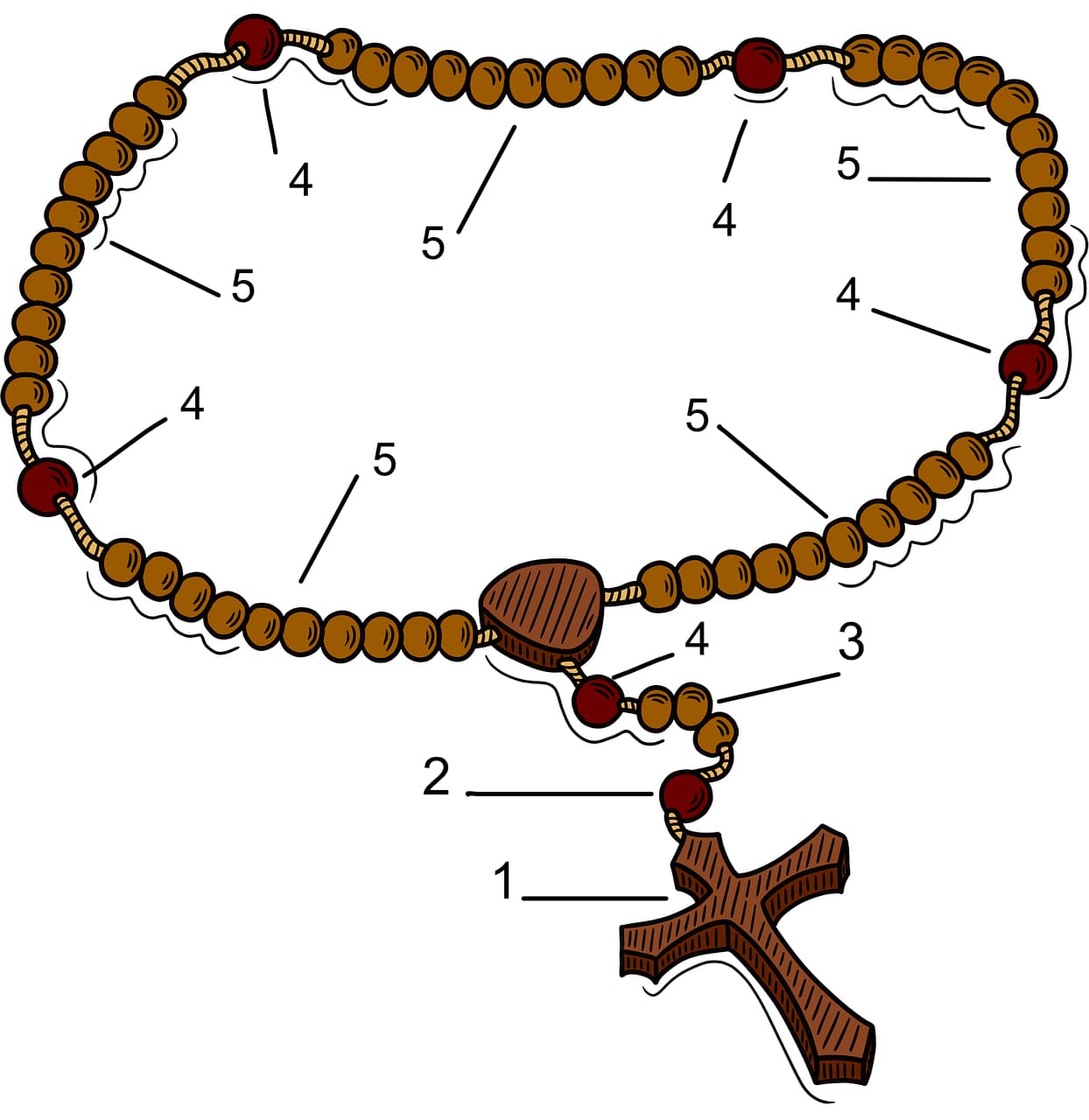 Jeweils zehn Perlen für Gegrüßet seist du, Maria.